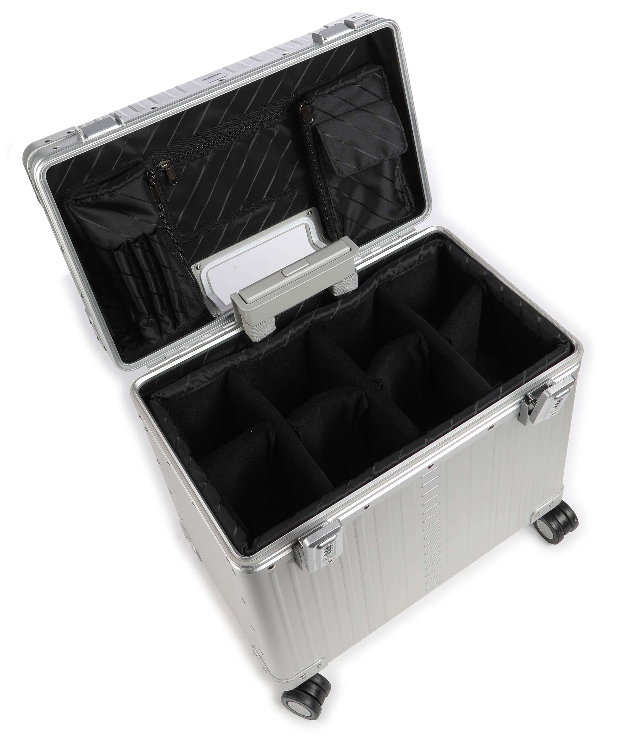 Roues: 4 roues (spinner), rouleaux doubles calmes et multidirectionnelles (360°)