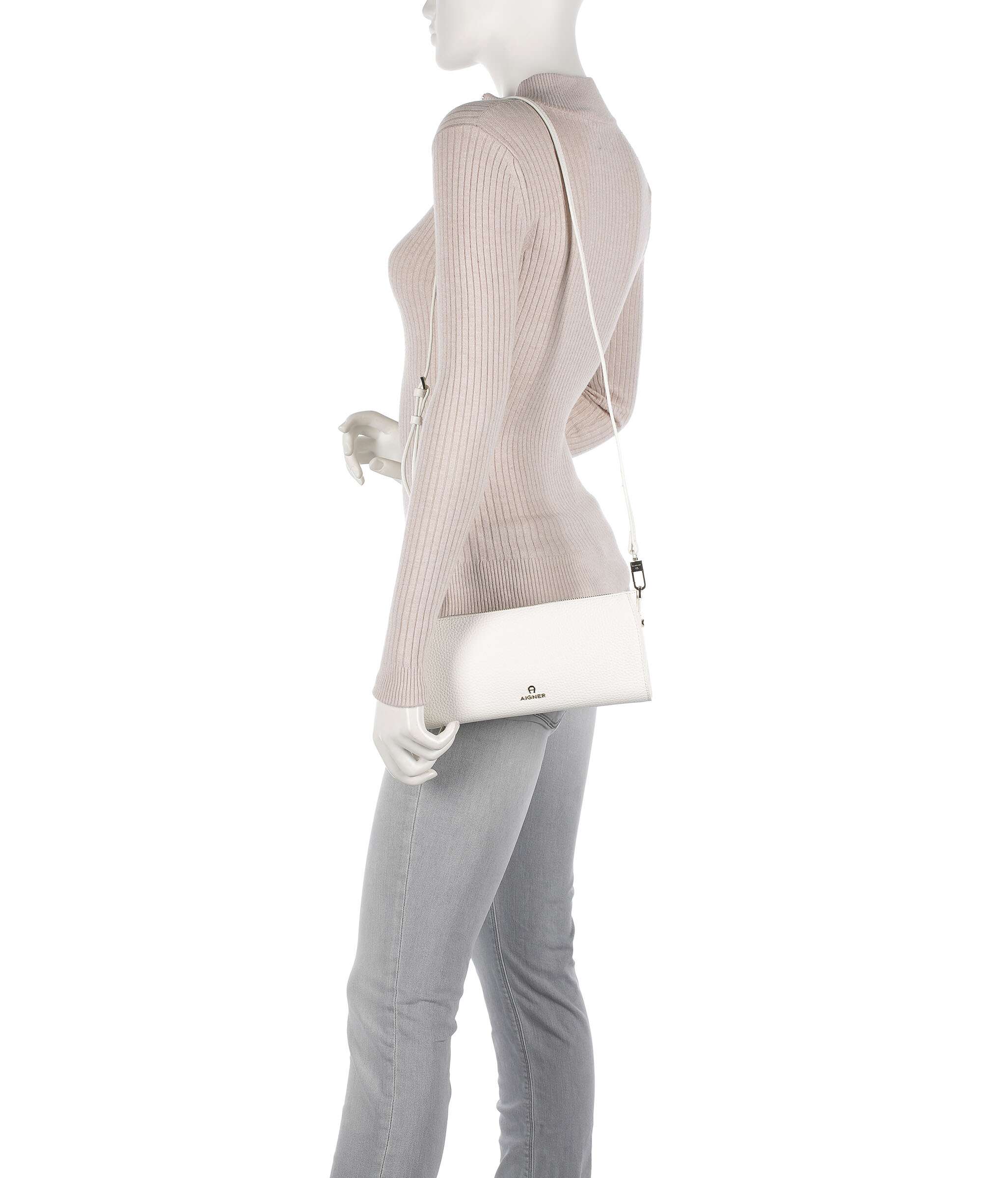 Ivy S Schultertasche genarbtes Rindsleder cotton white