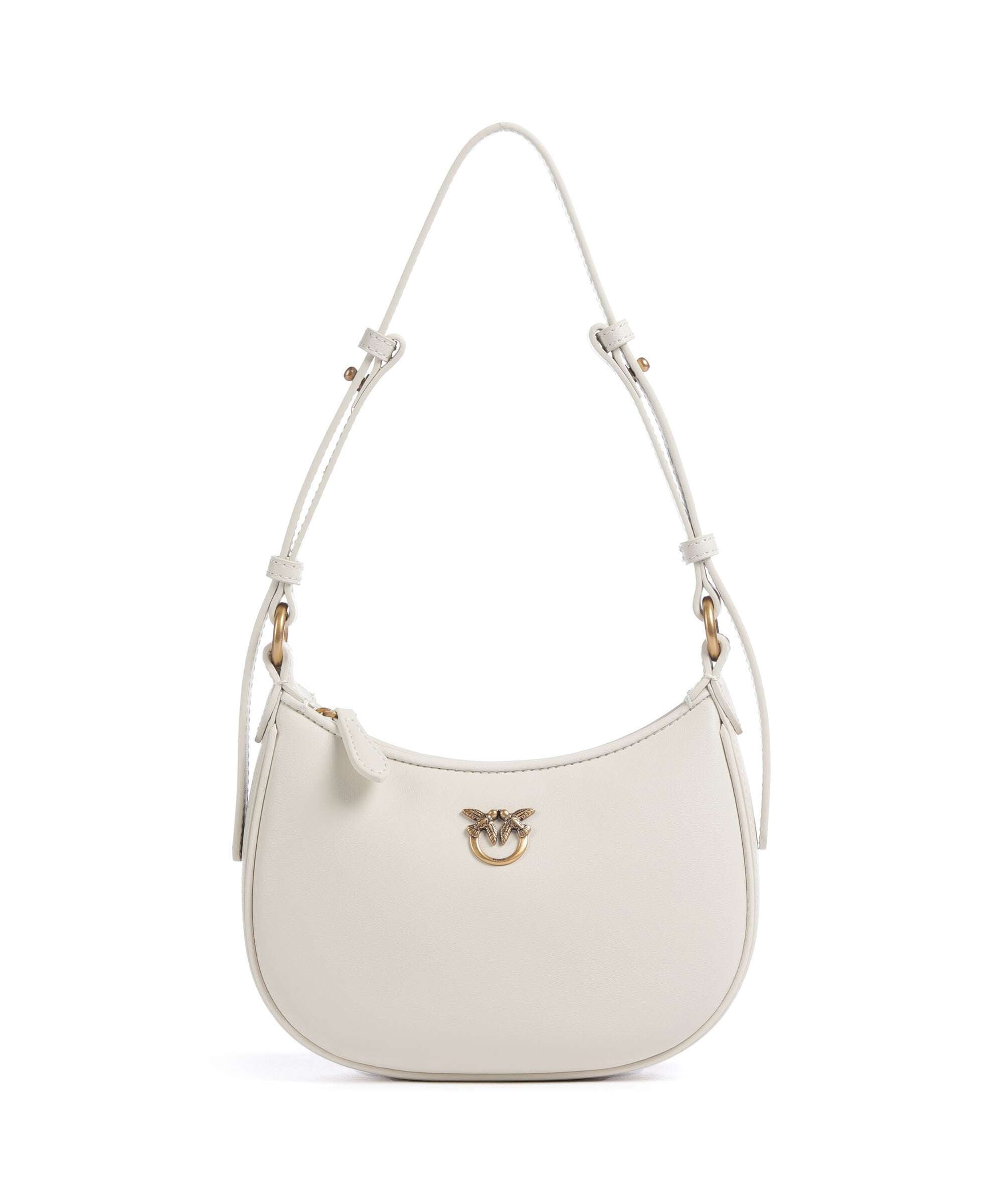 Half Moon Baby Schultertasche fein genarbtes Rindsleder bianco seta/antique gold